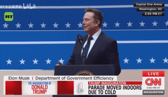 而當時間來到一月份特朗普總統就職禮時,在一聲聲“一龍!一龍!一龍!”的歡呼聲中,馬斯克沒能抑制內心的激動,咬牙、捂胸、抬臂……零幀起手用一套元首敬禮給了世界人民一波小小的震撼。