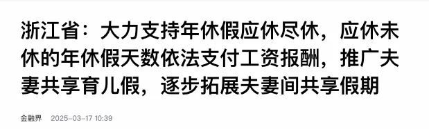 另外一個事兒是,浙江率先表態,打工人的年假要「應休盡休」,沒有休的年假,給打工人的報酬要「應付盡付」。