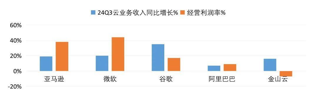 此前,雲業務在國內面臨生態困境,主要依賴人力投入,且運營商佔據天然優勢。然而,隨着AI技術的引入,互聯網公司能夠充分發揮自身技術優勢,突破原有生態限制。目前,國內互聯網公司的雲業務毛利率在10%-30%,基本處於盈虧平衡狀態;而海外雲巨頭的毛利率可達60%,利潤率高達30%,潛在利潤端提升的空間較大。