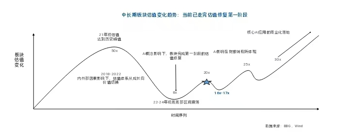基於AI賦能降本增效,港股互聯網企業第一階段估值修復已較為充分,多數港股互聯網企業的遠期估值已超20倍。下一步,港股互聯網企業進入第二階段的估值修復需更多證據支持,例如AI技術與現有業務融合對利潤端的顯著提升,其中雲業務或成為關鍵突破點。中長期來看,進入第三階段的估值擴張需依賴核心下游AI應用(包括Killer APP等)的商業化落地,目前相關進程仍處於早期階段,但一旦出現商業化證據,估值有望進一步擴張。