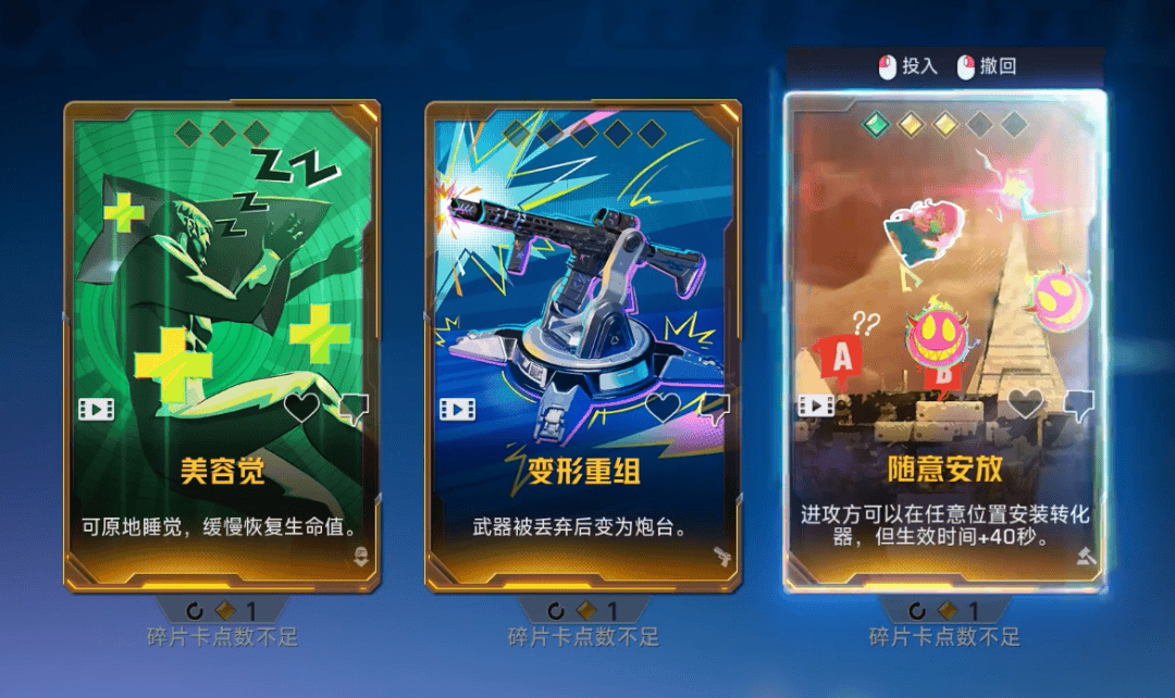 再比如選出“限時安裝”後,一分鐘後包點就會全部失效,爆破就變成了5V5死鬥。還有“隨意安放”這張卡可以讓攻方全圖下包,更有甚者可以把一個包變成五個包, 防不勝防,極為逆天。