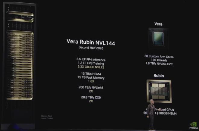 Vera Rubin和Grace Blackwell類似,集成了CPU和GPU。在Grace Blackwell中,Grace是CPU,Blackwell是GPU;而在Vera Rubin中,Vera是CPU,Rubin是GPU。