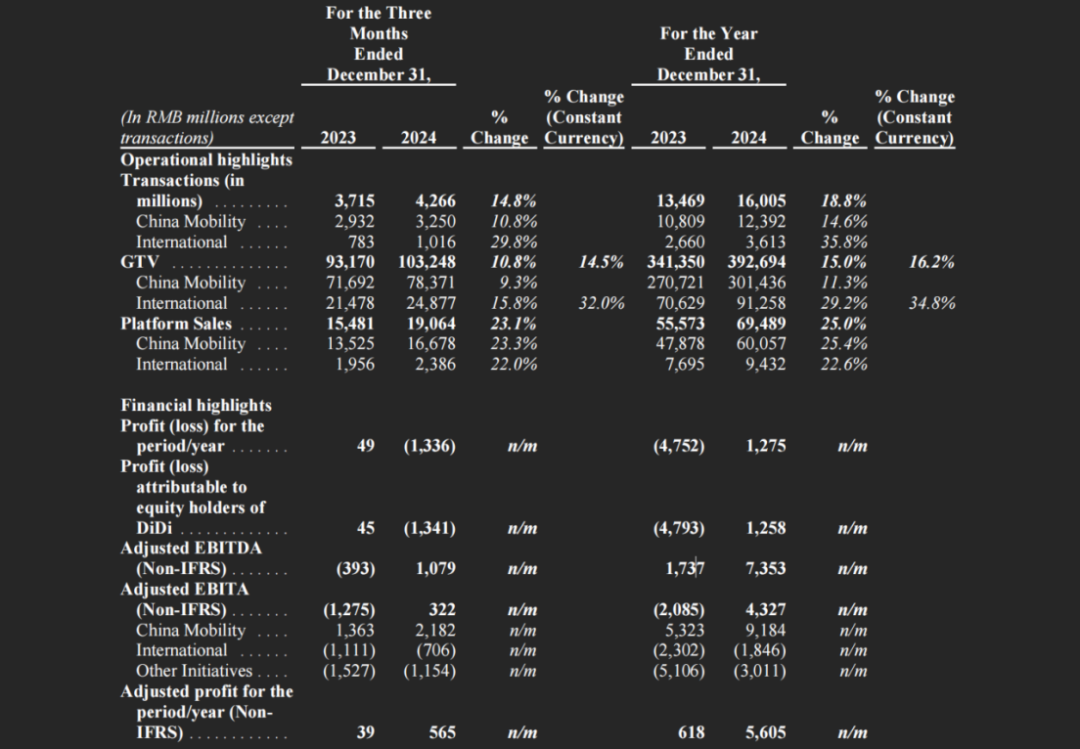滴滴 2024 年主要財務數據 | 圖片來源:滴滴財報截圖