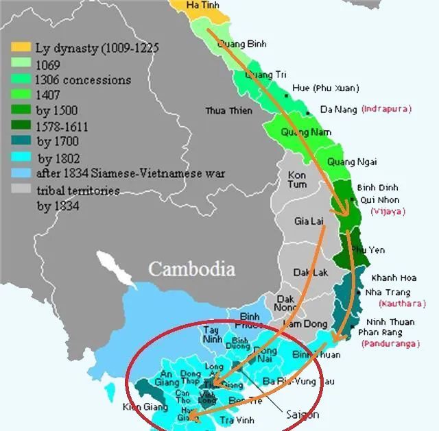 1698年,越南內戰的一方後黎王朝出兵佔領湄公河三角洲,使今天越南的版圖基本成型。
