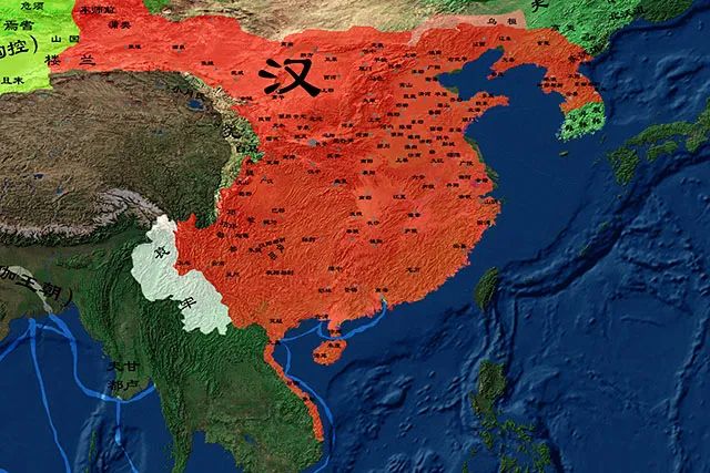 ▲漢武帝時期中國疆域深入到今越南北部和中部