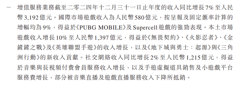 而總體 6000 多億的總營收中,最顯眼的,應該就要數增值服務中的遊戲部分,海外與本土加起來一共貢獻了近 2000 億,佔所有業務中的 32% 之多。