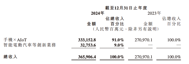 把時間線拉平,小米 SU7 從上線交付到今天,滿打滿算也才一年。但僅僅一年時間,汽車等業務的營收就佔到了整個集團營收的 9% 。