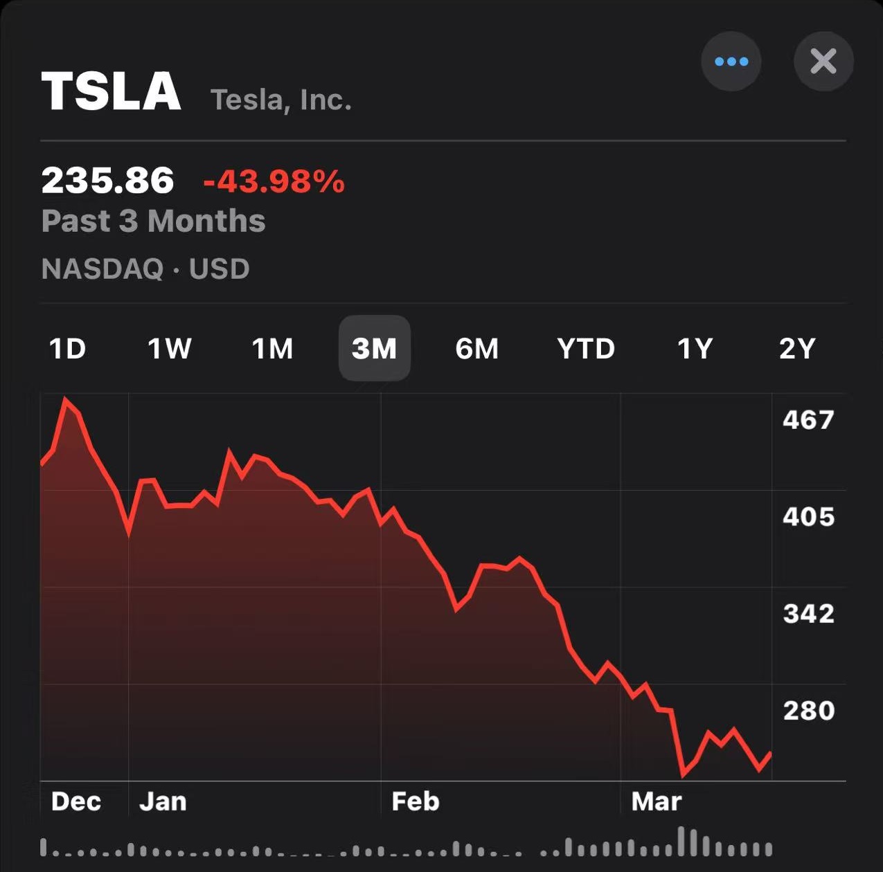 這樣自然也就造成了特斯拉的股票直落。在12月份馬斯克開始為特朗普瘋狂助選時,股價還在465美元的高點,現在已經暴跌了40%多,最低價甚至達到了250。