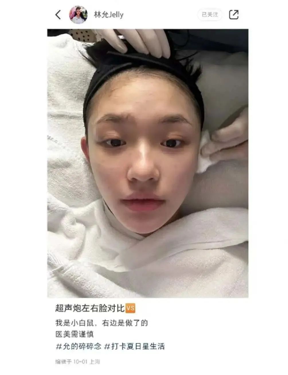 林允在社媒分享的那些醫美內容,就被網友評為“內娛活人”和“電子閨蜜”,吸引了不少粉絲。
