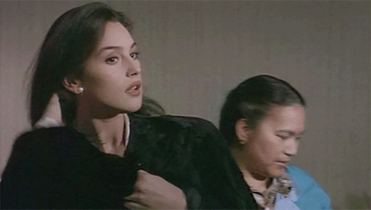 在《妻子的浪漫旅行》裏,她的圓眼變成了往上吊的樣子,表情不自然。