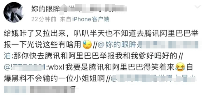事情越鬧越大,有路人站出來替人抱不平,然後就跟葫蘆娃救爺爺似的,也都被謝廣軍女兒(圖中“你的眼眸”)一一開盒了。