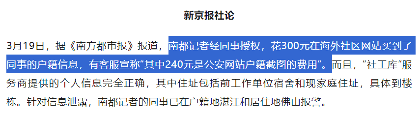 有媒體拿同事的身份信息去測試過,發現幾百塊就能拿到包括公安網站户籍截圖在內的信息,而且內容還非常準確。