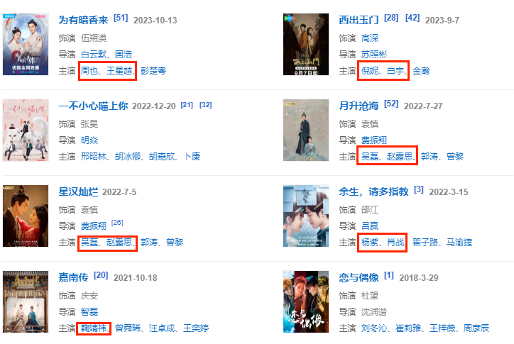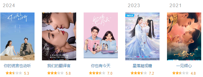 後續選材多變,大部分還是吸粉的專注女頻領域的古偶,但主角合作得都很微妙。