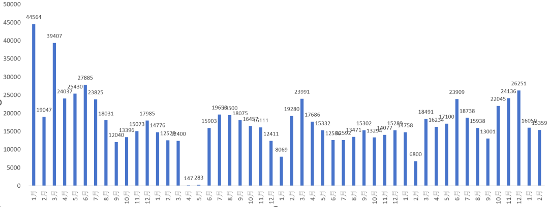 畢竟我們拉了2021年開始每個月的二手房成交套數
