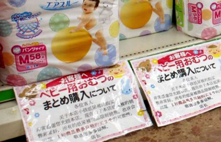 彼時,“中國人爭搶紙尿褲”的新聞屢見不鮮,一度導致日本的紙尿褲脱銷。而日本商店櫃枱上“每個家庭限購一包”的中日雙語貼紙隨處可見。