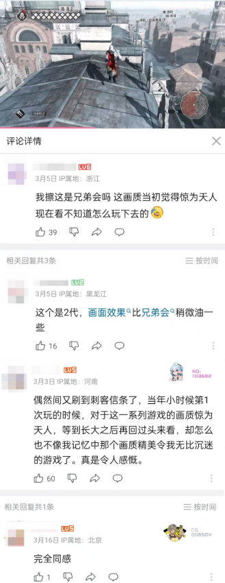 大概是因為新作要發售了,近期刺客信條系列舊作相關的一些視頻也吃到了更多推送流量,在評論區則常能見到一個現象,就是玩家們感嘆為什麼如此粗糙的畫面,自己當年玩的時候卻驚為天人。