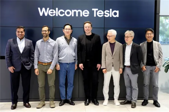 李在鎔(左3)參訪馬斯克(右4)的特斯拉公司