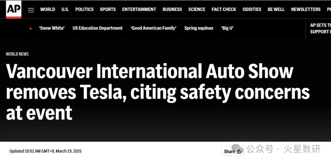 3 月 19 日美聯社報道稱,特斯拉當天被踢出温哥華國際車展,其影響只會越來越嚴重。