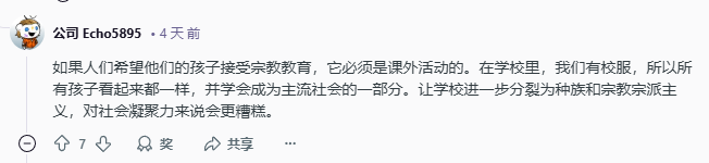 有人表示,自己不希望任何公開的宗教人士在兒童教育中擔任任何形式的領導角色。