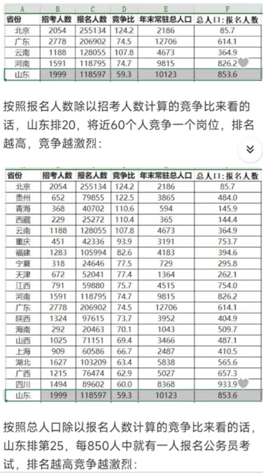 在公考界,山東人“燃燒軍團”式巡考,讓很多外省考生心有餘悸,產生“山東人壟斷考公”的感覺。實際上2024年河南省考66萬報名人數遠超山東的40萬,但河南考生大多在本省考試,而山東考生如蒲公英般散落到全國各地的考場,客觀上放大了山東考生的存在感。
