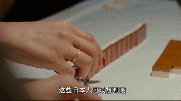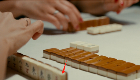 在《色,戒》裏的第三場麻將戲,易先生為了王佳芝“上桌”,在期間二人互相喂牌。