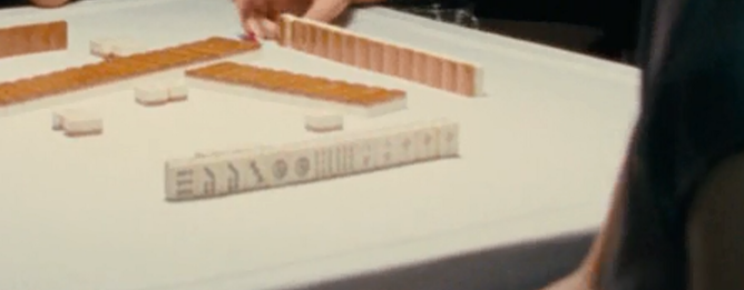 在第一場麻將開局前,鏡頭給了一個大俯拍。
