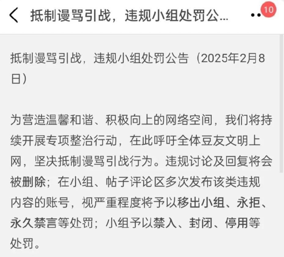 豆瓣自身也多次成為官方整治“網絡亂象”的具體指向,甚至一度下架,督導組親自下場督促整改。
