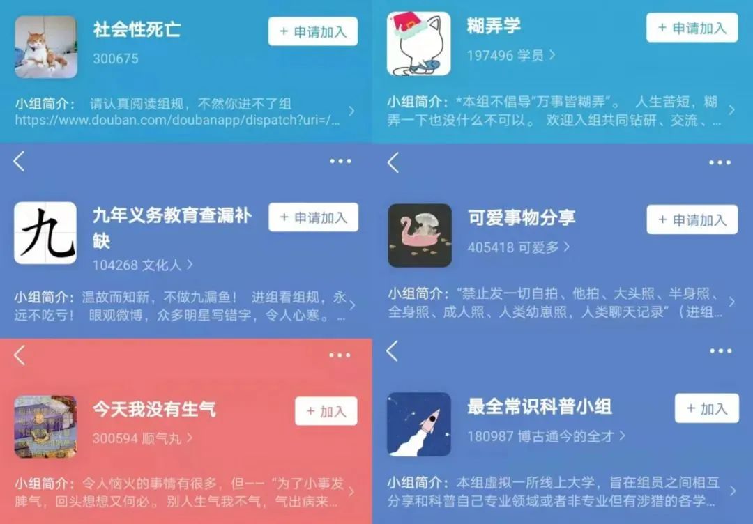 到如今,豆瓣的用户數和月活在一眾應用中早已並不突出,但它的話題製造能力和議程設置能力在相當長時間裏仍然格外強勢。這部分能力來自於廣泛存在的數十萬個豆瓣小組,只不過她們帶給豆瓣的只能説是利弊皆有。