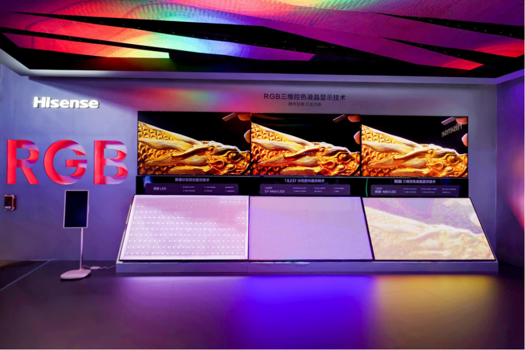不止是芯片,在顯示技術上海信也一直探索佈局。比如前瞻性佈局激光電視的研發,獨立研發了ULED顯示技術,還對Micro/Mini LED技術進行了佈局。經過多年開疆拓土、持續進化,如今的海信已經積累了深厚的技術優勢,最新的三色顯示技術已經落地RGB-Mini LED電視、全系三色激光電視、三色激光投影產品,實現三色顯示初具規模。既佔着技術制高點,也佔着市場制高點。