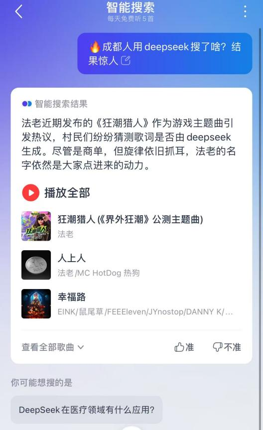 而網易雲音樂則全面接入DeepSeek,加速AI技術的應用,以增強個性化推薦服務,提升用户體驗,本質上是夯實其社區護城河。騰訊音樂娛樂集團首席執行官樑柱,也在財報發佈後提到,“展望2025年,我們將利用AI來增強個性化服務,併為用户帶來更多新鮮的音樂體驗。”