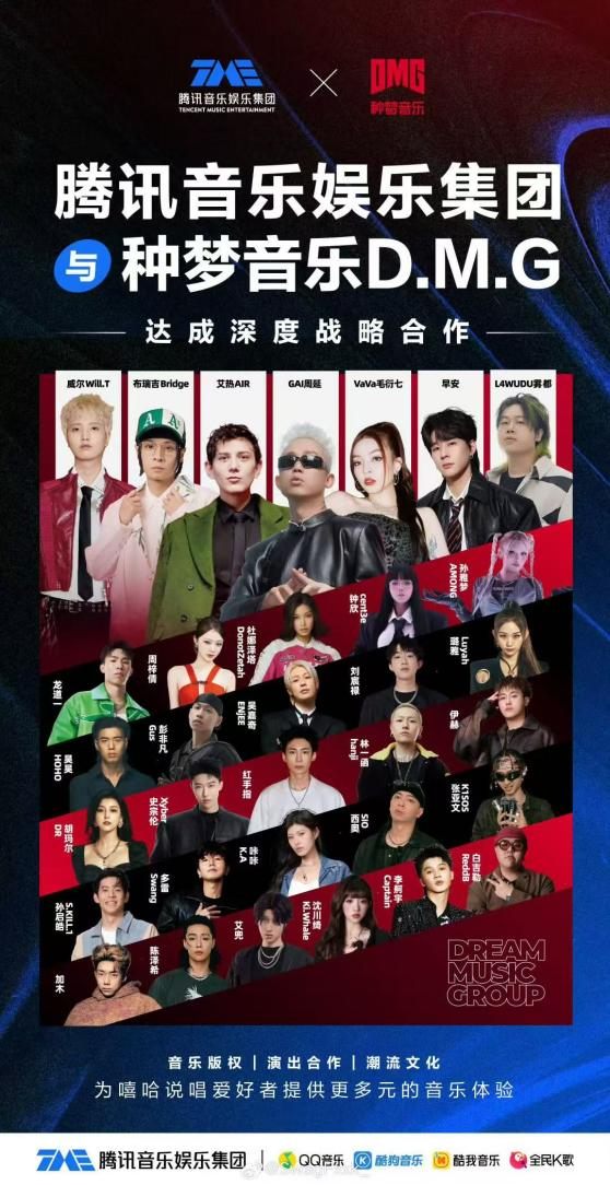 內容+生態驅動保持領先優勢。內容建設上,騰訊音樂擁有超2.6億首授權及共創音樂與音頻曲目,並在版權內容持續擴張、深挖豐富內容生態:與SM娛樂、Kakao娛樂續約,將合作範疇拓展至優質音效、藝人演出及周邊,在2025年3月,與説唱音樂經紀公司種夢音樂D.M.G(以下簡稱為“種夢音樂”)達成深度戰略合作,在音樂版權、音樂演出、潛力説唱音樂人挖掘與扶持、品牌聯動與跨界合作等多個領域探索可能。