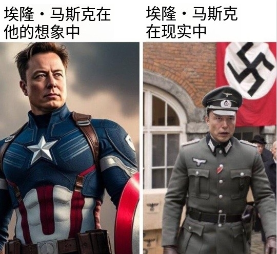 我們從近期抗議羣眾打砸特斯拉汽車事件中,可以看到大量將馬斯克與納粹聯繫在一起的照片,馬斯克已經被釘死在極右翼和納粹上了,未來很多年都無法洗白。——如果他還有未來的話。