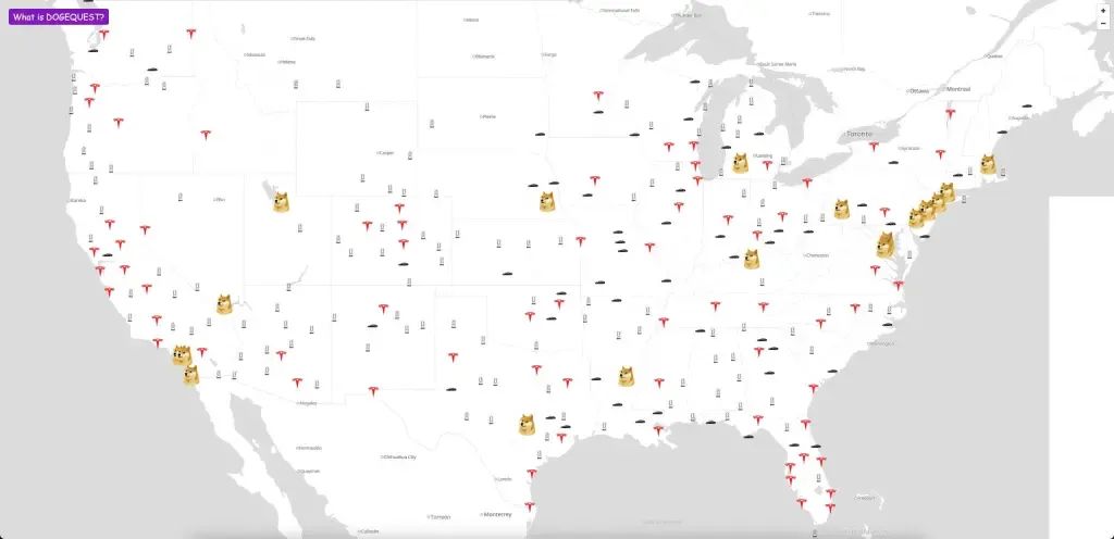 但抗議的美國人可不怕這個,之後美國一家名為“Dogequest”的網站使用開源地圖“開盒”了全美國所有特斯拉車主的姓名電話和住址、特斯拉4S店位置、特斯拉充電站位置以及美國政府效率部門人員的家庭住址。