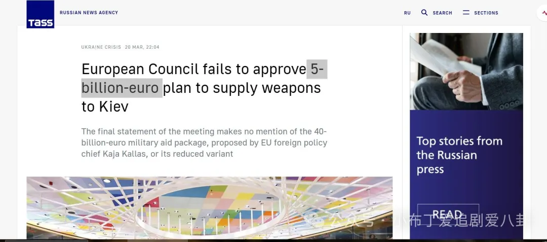 關於這件事塔斯社也有報道,週四召開的歐洲理事會未能就向基輔政府提供更多軍事援助做出任何實際決定。最終聲明沒有提到歐盟外交政策負責人卡雅·卡拉斯提議的400億歐元軍事援助計劃,也沒有提到其價值50億歐元的縮減版。