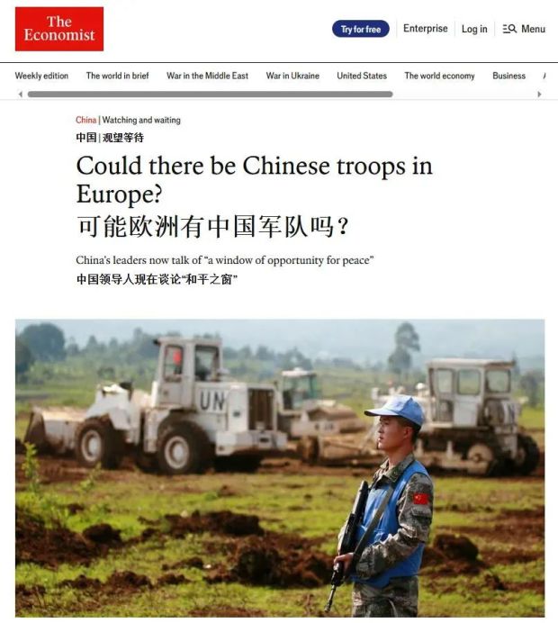 我在開頭給大家複述的這段開場白,是我從新加坡《聯合早報》官網最近刊登的一篇評論文章上節選下來的。在這篇文章中,《聯合早報》中國新聞副主任、北京特派員沈澤瑋援引了包括《經濟學人》等西方主流媒體近期的觀點,重點討論了一個乍一看非常炸裂,但仔細想想又好像有幾分道理的話題——尤其是對歐洲人而言——中國有沒有可能向烏克蘭派維和部隊?