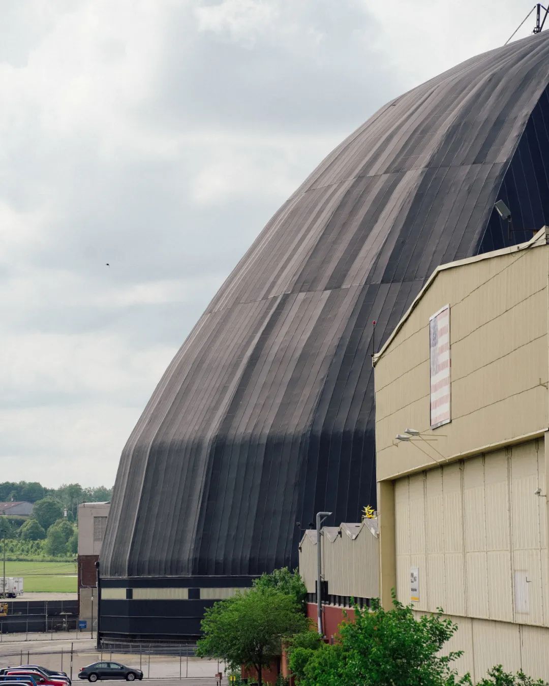 科技公司也喜歡阿克倫遺留的基礎設施。Google 創始人謝爾蓋·布林創辦的神秘飛艇公司 LTA Research and Exploration,於 2023 年在阿克倫租下了曾屬於固特異飛艇的巨大機庫。這座「繭」型機庫堪稱美國工業化黃金年代頂點的象徵:面積大於八個足球場,拱形大跨度完全沒有柱子。每扇大門重 600 噸,門下每個輪子都要由一個獨立的發電機。啓動時,需要 5 分鐘才能把門打開。甚至因為建築過大、過於空曠,濕度高的時候室內會下雨。