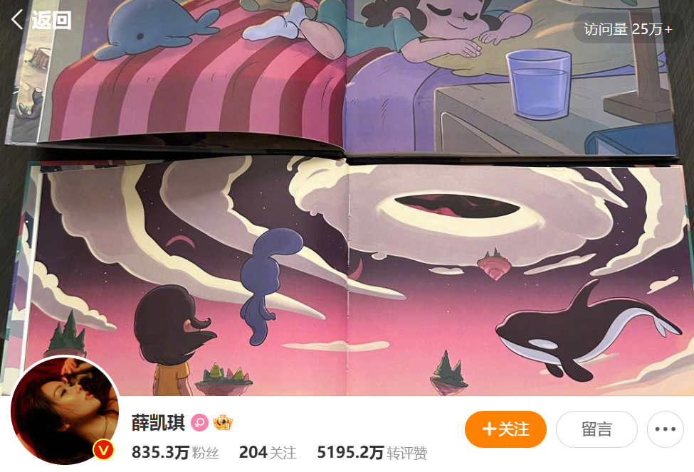 當天,薛凱琪沒有露面發聲,而是默默地將全平台的背景封面,換成了方大同創作的繪本插畫。