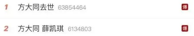 方大同逝世的消息被公佈,她的名字被頂上熱搜。