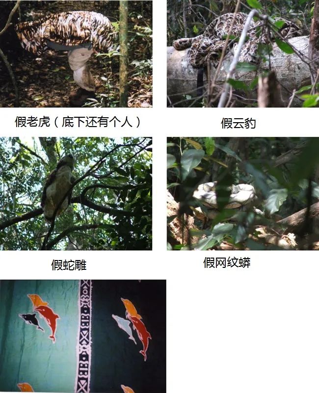 用來測試長臂猿的假動物,最後這塊花布是對照組。圖片來源:參考文獻[2]