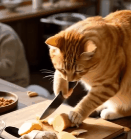 其中重災區莫過於AI小貓幫主人做飯,大橘一改往日充當“大雞腿”的慵懶形象,上得廳堂下得廚房,切菜燒飯不在話下,《料理鼠王》屬實沒拍全,應該再拍一部續集**《料理貓王》。**