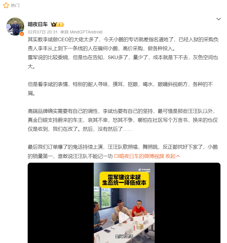 在此之前,2月份網上就流傳一份“即將離職的蔚來員工‘小小蝸牛’在蔚來內部論壇‘Speakout吐槽’發佈長文”的消息,文中指出蔚來虛招太多,不少矛頭直指李斌,蔚來李斌還實名回覆“謝謝大家的建議,提升全員經營意識,從我自己做起。”並通過飛書將此文同步全員。