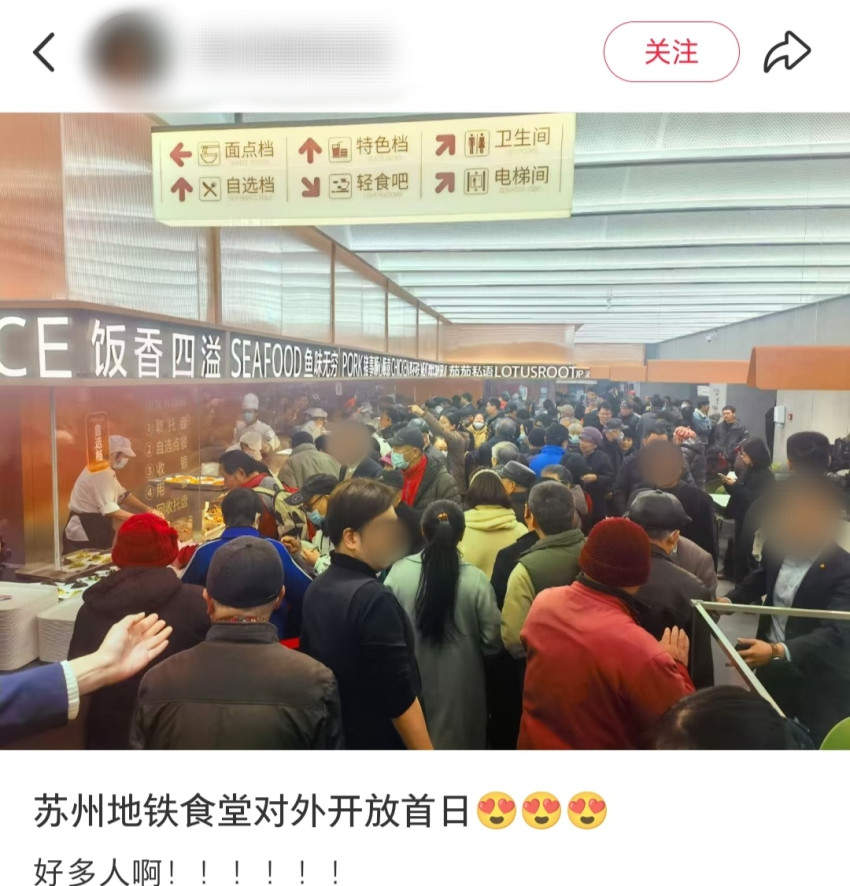 在地鐵食堂裏面用餐,是一種怎樣的體驗?最近,蘇州上線了全國第一家地鐵食堂,吸引了眾多網友前往打卡,地鐵站每天都擠滿了來吃飯的人。