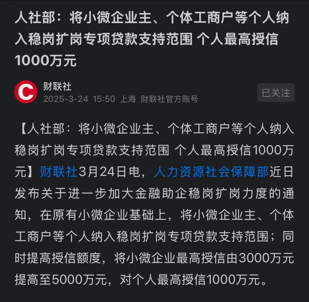 ——個體户、小微老闆們,最高能貸1000萬,穩崗擴崗支持來了。