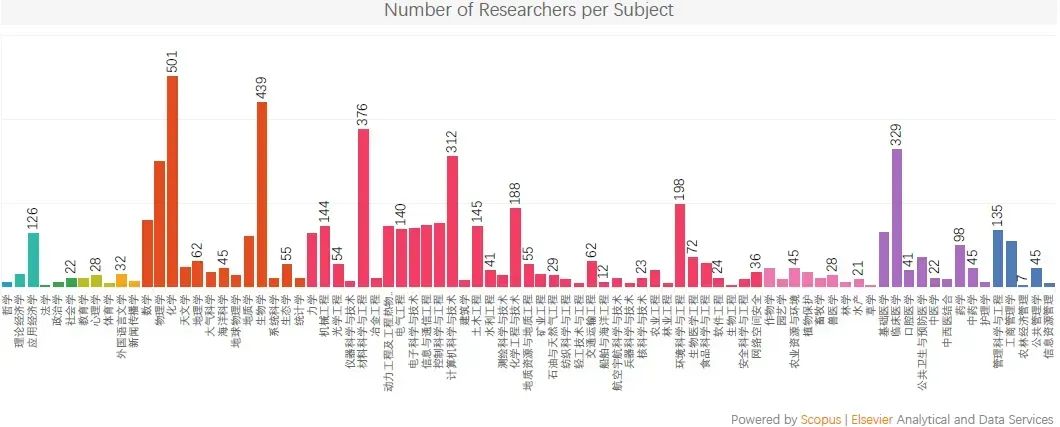 不同學科上榜人數(圖片來源:“愛思唯爾科研醫學服務”微信公眾號)