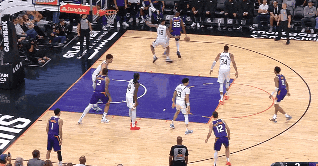 70比77時,古德温和文森特雙替勒布朗和裏夫斯。盧卡獨自帶隊;過了一會兒,範德彪替下了電風扇:這是個防守陣,然而空間沒了。