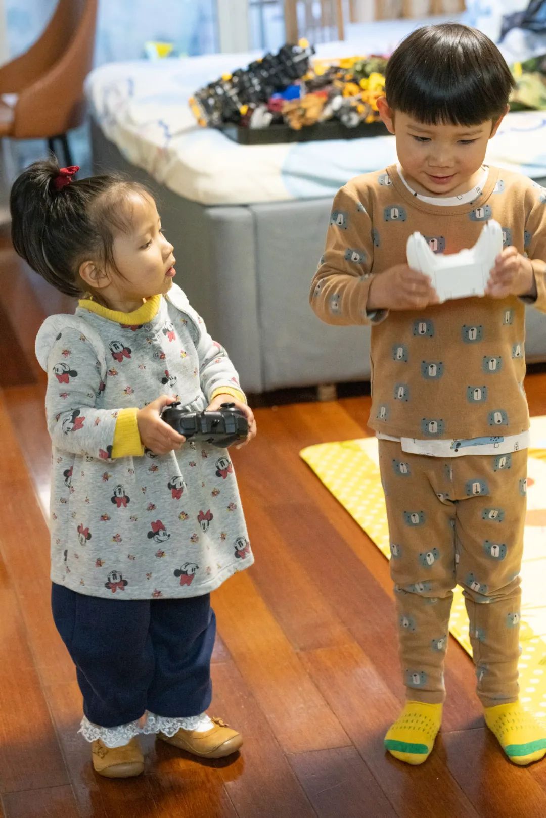 另一方面,到了2歲之後,妹妹在很多東西的偏好上,也都越來越受女孩天性的支配,跟哥哥分道揚鑣。如果説饅頭是個純爺們兒,妹妹就是個標準軟妹子。比方説吧,哥哥玩小汽車,妹妹只喜歡玩小汽車上一按就能放音樂的按鈕;哥哥玩樂高,妹妹只喜歡給樂高裏的小人偶過家家;哥哥討厭手套、帽子等一切額外的衣物,妹妹卻喜歡各種裝飾性的服飾和配件;哥哥從小就對毛絨玩具不屑一顧,偏愛變形金剛之類的機器人;妹妹天然喜愛毛絨玩具,會給娃娃睡搖籃、穿尿布、喂東西吃;哥哥對繪本圖書堪稱“憎惡”,妹妹卻會主動要求看書……