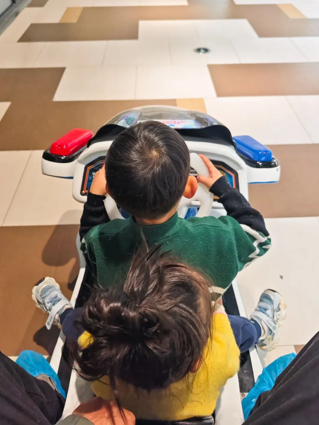 ▲對於已經“騎行”過川藏線的饅頭而言,商場裏帶着妹妹開個恐龍車簡直是小菜一碟