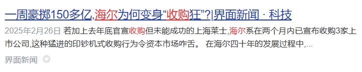 2021 年到 2025 年,海爾在智慧家居、工業互聯網以及生物醫療領域瘋狂撒幣收購。