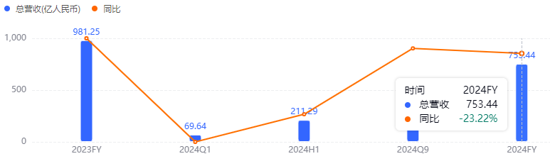 本次公佈的業績報告數據中還對金地集團全年營收情況進行披露。報告顯示,**期內金地集團實現營業收入753.44億元,同比下降23.22%;歸屬於母公司所有者的淨利潤為-61.15 億元,同比下降788.54%,**基本每股收益虧損1.35元。