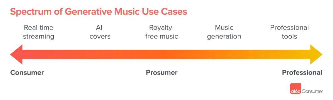 A16z曾經發過一篇關於AI音樂的前瞻報告,認為音樂產業非常適合AI的貨幣化,因為這裏有着高度成熟化的商業鏈路,分賬模式也相對穩定,這種確定性,讓從業者們願意為生產力的提高支付費用。